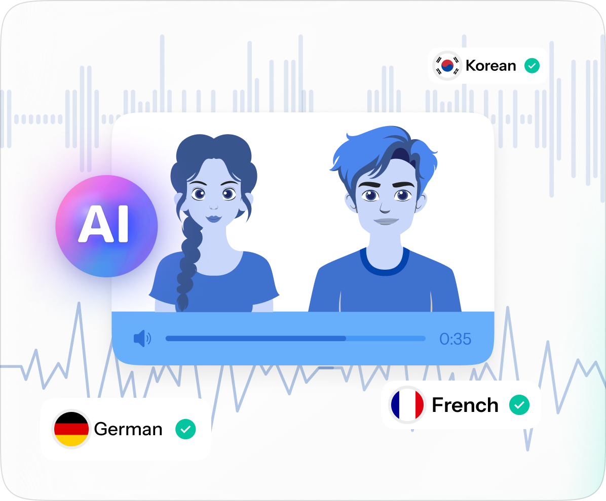 Our AI handles the dubbing and syncs everythingโjust download and share.